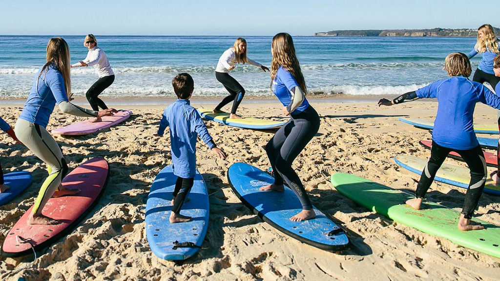 Lessons usually last around 2 hours, include board + rash-guard, and take you through safety, paddling, pop-up, and catching your first waves.