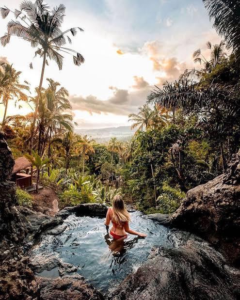 Gembleng Waterfall, located in the peaceful village of Sidemen in East Bali, is one of the island’s most charming hidden gems. Unlike Bali’s larger and more powerful waterfalls, Gembleng is small, intimate, and beautifully tucked into a lush jungle hillside. What makes this spot truly special is its series of natural rock pools that form gentle steps along the cliff. The uppermost pool is often referred to as a “natural infinity pool,” offering a stunning panoramic view of green valleys and forested hills. This combination of tranquil water, dramatic rocks, and tropical scenery makes Gembleng Waterfall a perfect place for relaxation, meditation, and photography.
