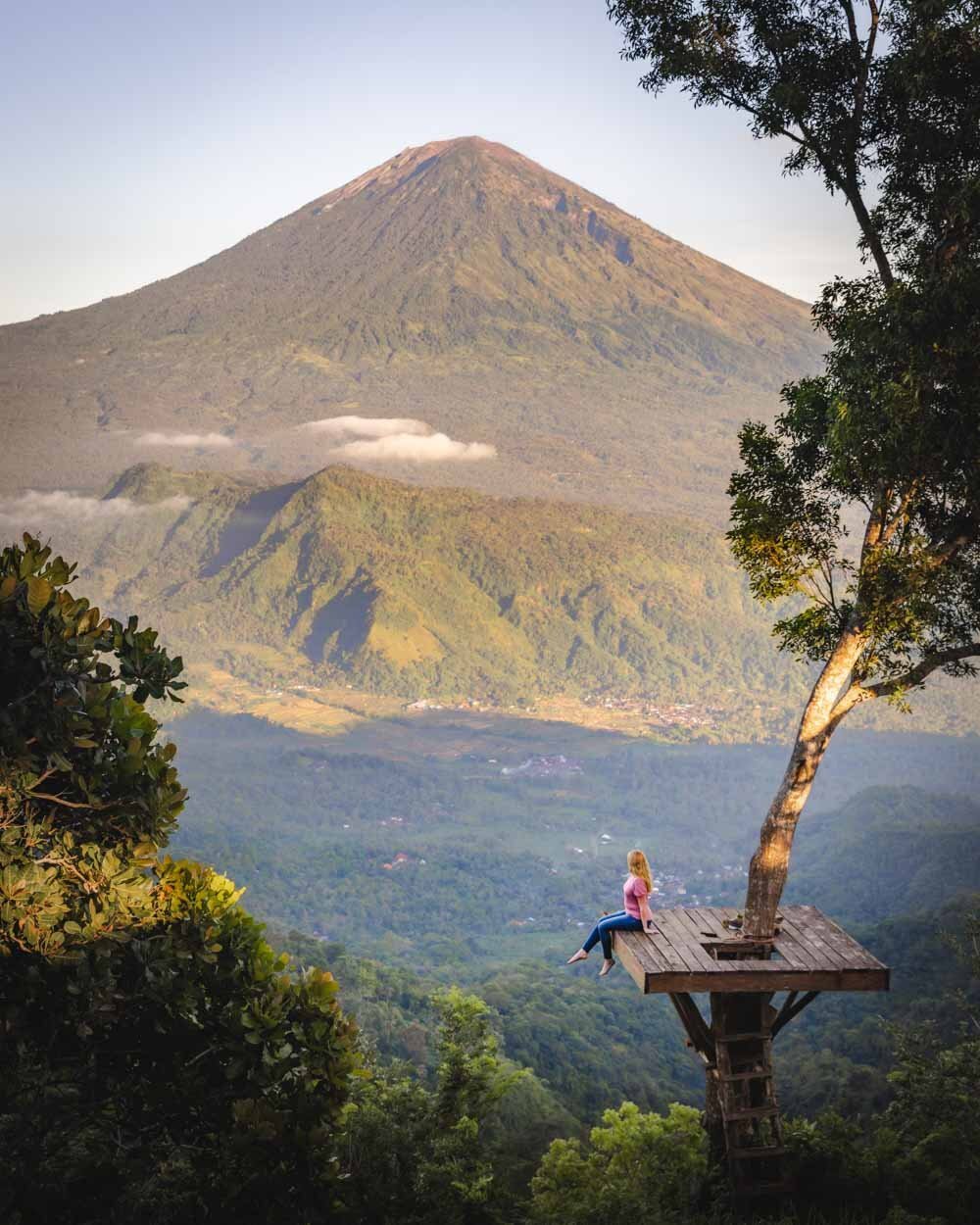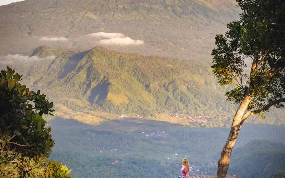 Next, continue uphill to Lahangan Sweet, one of the most scenic viewpoints in Bali. From here, you’ll see the majestic Mount Agung standing tall above the clouds, with sweeping views of the sea and forest below. It’s the perfect place for photos and a quiet moment to take in the beauty of nature.
