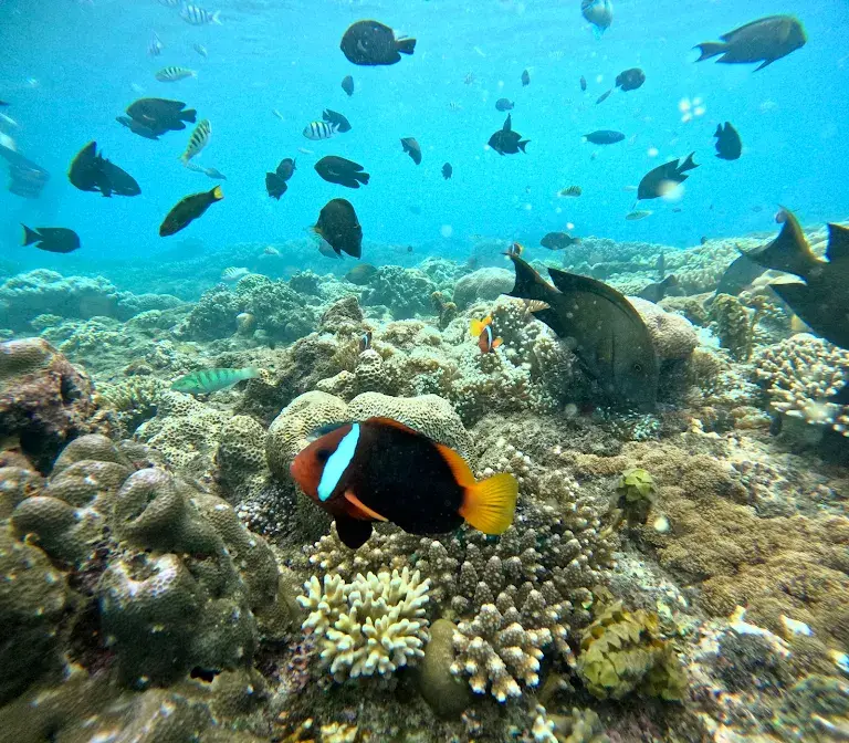 As you glide through the calm waters, you’ll have the chance to spot a wide variety of tropical fish such as clownfish, angelfish, parrotfish, and even occasional sea turtles. The soft white sand and vibrant coral reefs create a peaceful environment ideal for relaxation and exploration.